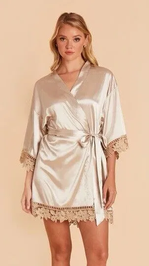 Indulge in luxury with this stunning Birdy Grey Claudine Lace Robe. The shiny satin neutral champagne color is perfect for adding a touch of glam to your sleepwear routine. Made with high-quality lace fabric, this robe is incredibly soft and comfortable to wear. The XL/XXL size is perfect for women of all shapes and sizes. The robe features a stunning beige color that will complement any skin tone. This robe is perfect for any woman who wants to feel elegant and comfortable while she sleeps.