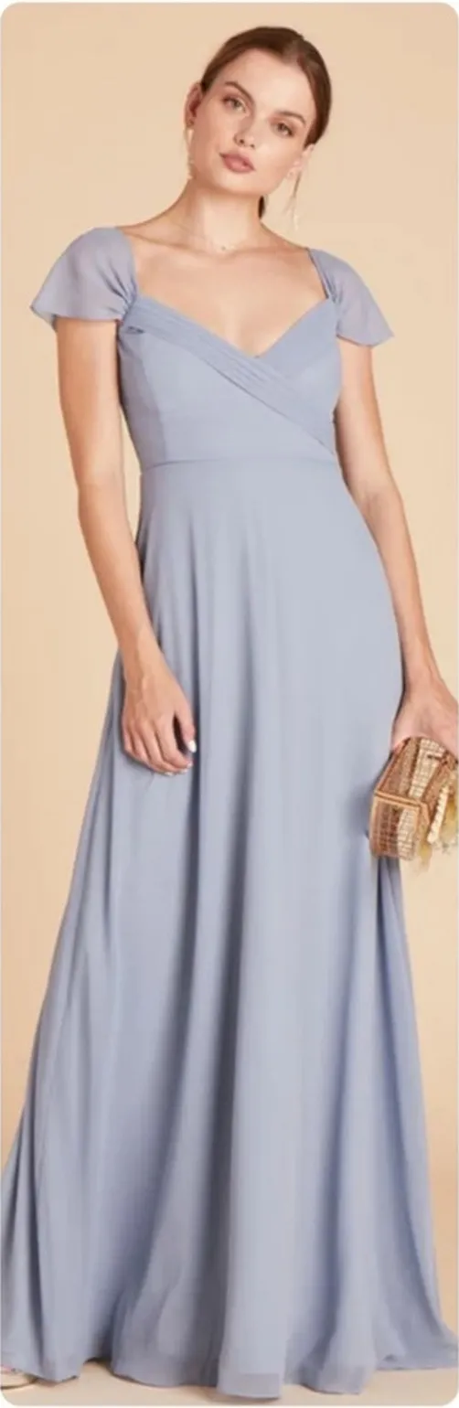 Birdy Grey Spence Convertible Chiffon Bridesmaid Dress A draped-sleeve bridesmaid dress you can wear with or without straps! Draped sleeves can be worn 3 ways: off the shoulder, cold shoulder & cap sleeve Clean pleated bodice Fully lined with built-in boning + bra cups for extra support Fitted high waist with floor-length, sweeping skirt Adjustable straps Invisible center back zipper with hook & eye closure 100% polyester chiffon shell and lining Dry clean only Color: Dusty Blue (light blue) Style: Spence Convertible Size: M Measurements are provided in picture Condition: New with tags (NWT) tags: Bridesmaid, bridal, wedding guest, preppy, boho, bohemian, spring, summer, fall, autumn, girly, chic, feminine, prom, homecoming, evening, formal, cocktail, date night, anniversary, honeymoon, special occasion event, party, maternity photos, engagement pictures