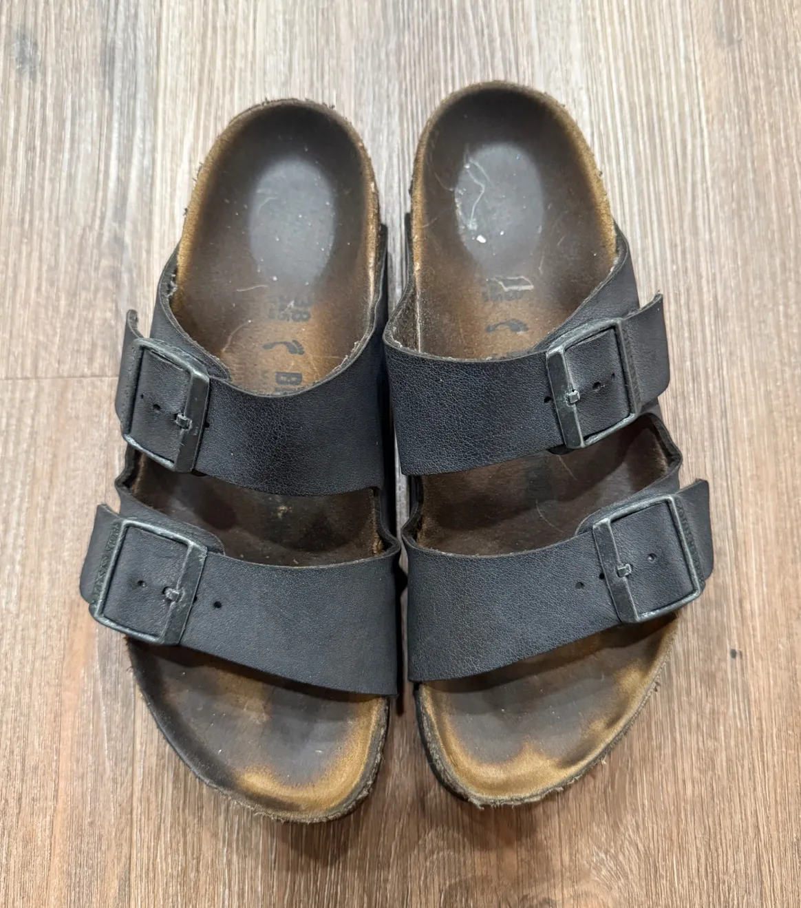 Birkenstock Arizona black leather double strap sandals. These iconic sandals offer classic comfort a... Show more