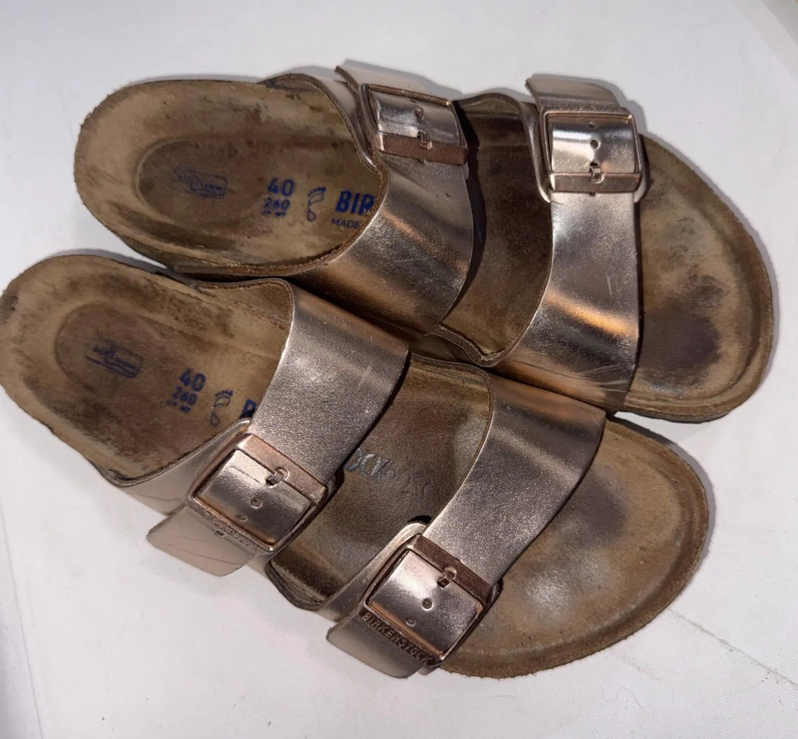 Birkenstock Arizona Rose Gold Outdoor Iridescent Gorpcore Sandals Sz 40, in USA Women’s Size 9 in go... Show more