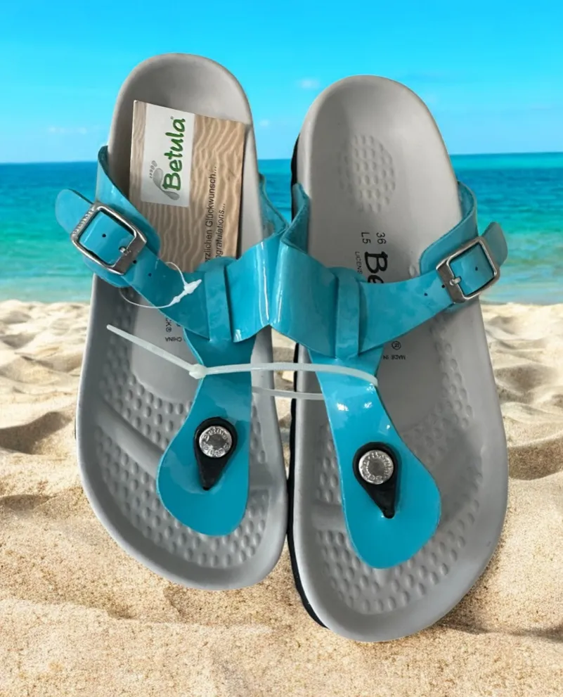 Birkenstock Betula Size 5 Women Gizeh Thong Sandal Blue Patent Leather NEW - $40 New With Tags - From Eliza