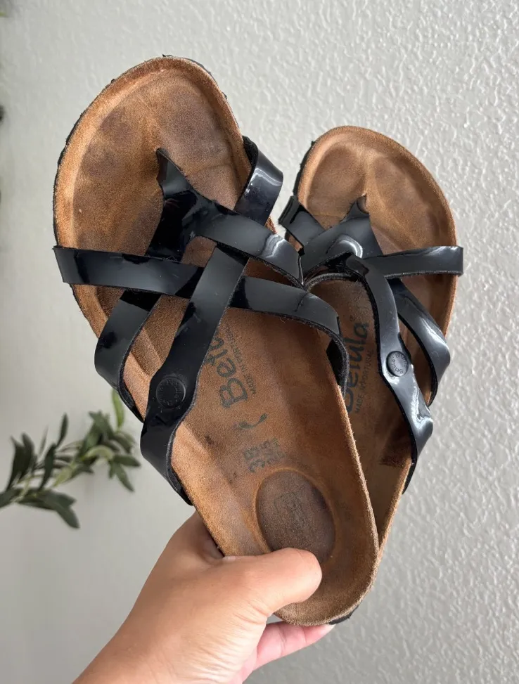 Stylish black strappy sandals with a comfortable footbed. Birkenstock Betula Vinja sandals in black... Show more