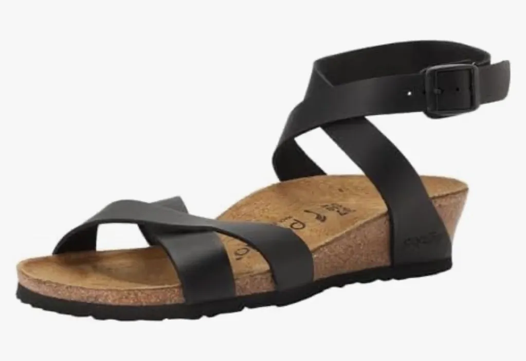 The Lola model from Papillio boasts a stylish wedge heel and a backstrap for an especially secure grip. The upper is made from high-quality pull-up leather for a smooth and subtly shimmering look. The cork-latex footbed offers perfect grip and comfort. Narrow width. Anatomically shaped cork-latex footbed Upper: pull-up leather Footbed lining: suede Details: individually adjustable backstrap Sole: EVA Footbed made in Germany Excellent/like new condition! Heel height approximately 1-1/4”. S-420