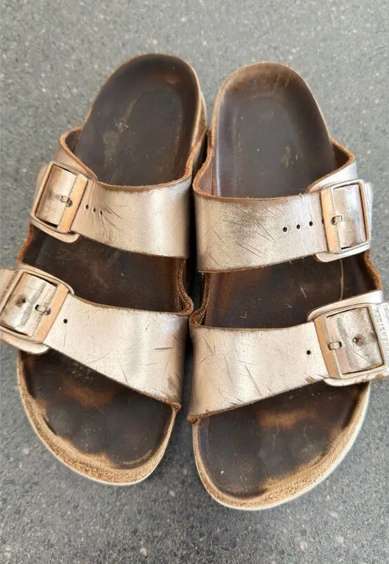 The BIRKENSTOCK Arizona Leather Slides Tobacco Shoes Casual size 40 equivalent US 9 6:484 4 Google... Show more