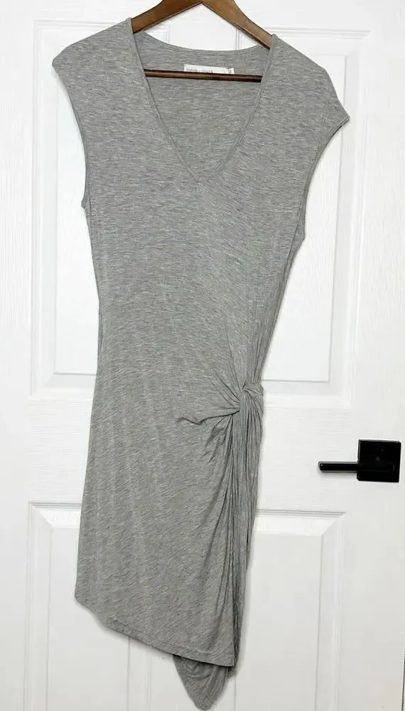 Curve hugging pullover style knit dress. V-neck with cap sleeves and pretty side ruched detail. *Size Large, approx: -17" armpit to armpit -14" waist -36.5" length *100% Modal *Excellent Condition (E20)