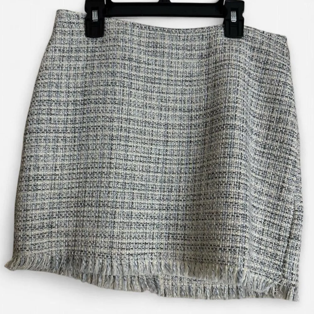 Bishop + Young Women's Size S Tweed Mini-Skirt Fringe Hem Zipper Ivory Blue - $25 - From Pau