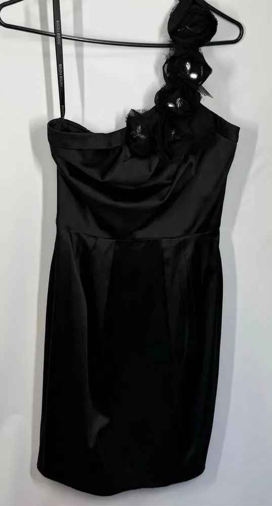 Bisou Bisou Michele Bombat Women satin one shoulder flower jeweled dress size 6 Excellent used con... Show more