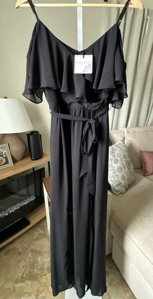 Enhance your wardrobe with the Bisou Bisou Michele Bohbot Sleeveless Belted Black Maxi Dress. Design... Show more