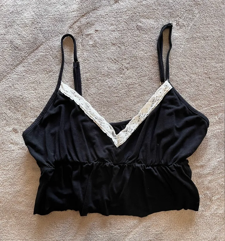 Black & White Lace Trim Y2K Crop Tank Top Cami Women’s Sz S GUC - $8 - From Tara