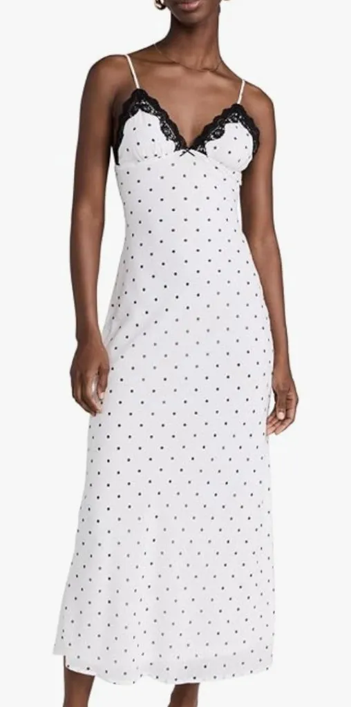 Black and White Polka Dot Maxi Slip Dress Black Lace Trim V-Neck Size XS - $16 - From Valerie