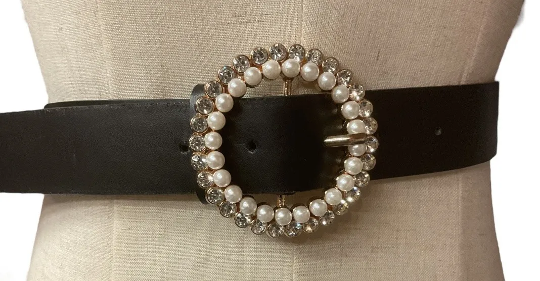 Black Belt Women's Size 14 Pearl Rhinestone Buckle Chic Fashion Accessory Complete your outfit with... Show more