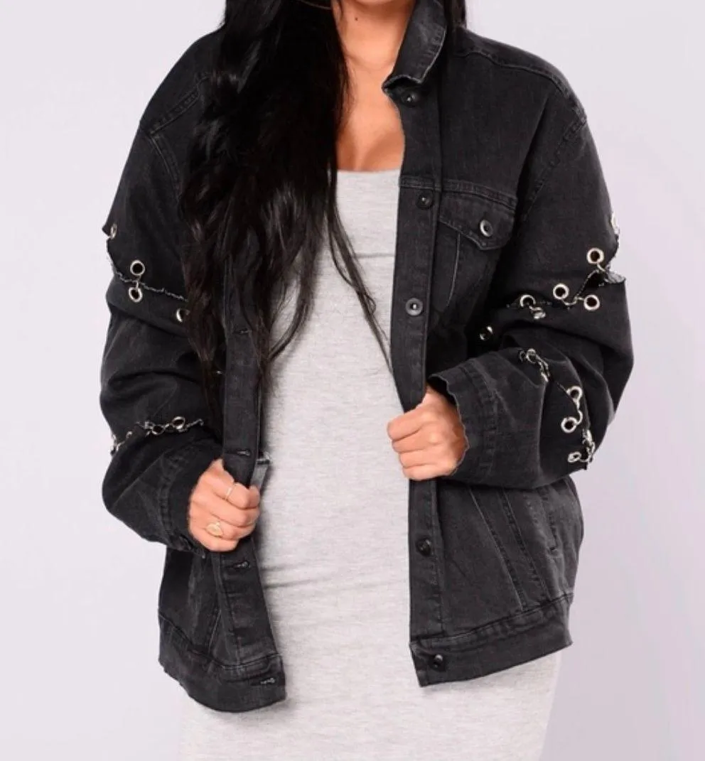 Black Chain Denim Jacket Size M - $37 (32% Off Retail) New With Tags - From Anna