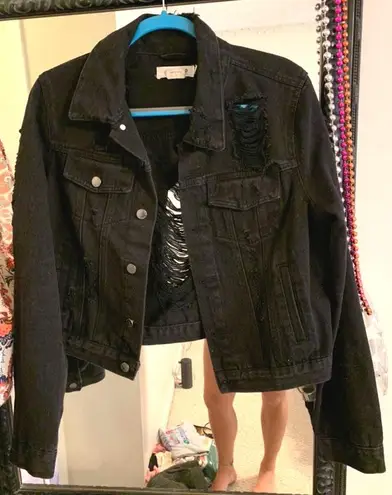 black distressed denim jacket Size L - $15 (50% Off Retail) - From Peyton