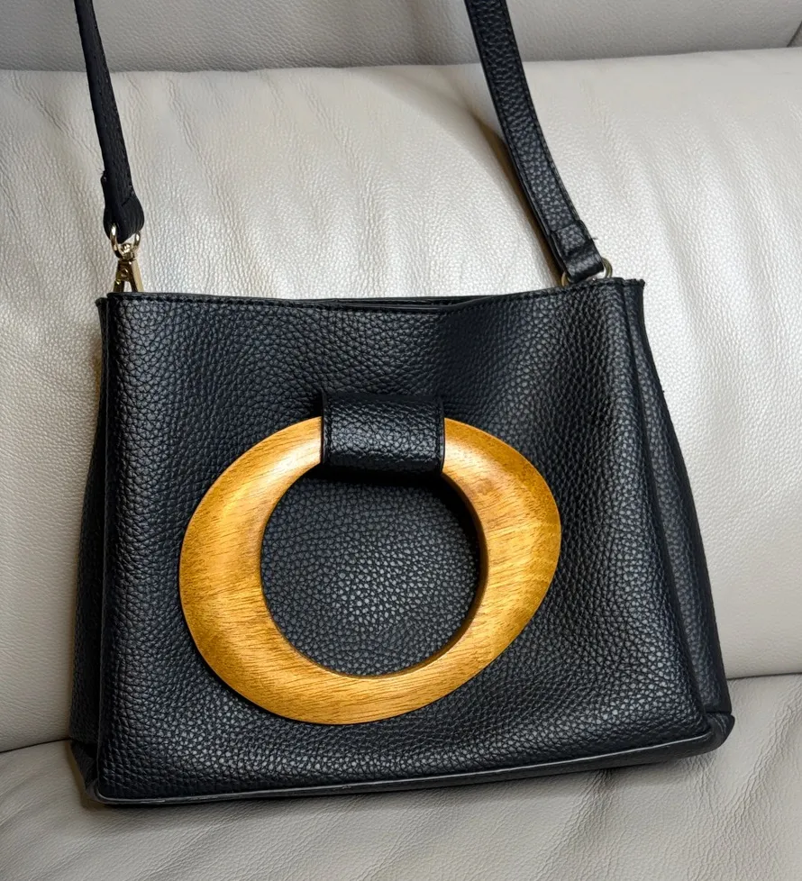 Adjustable crossbody belt Elegant black leather bag featuring a striking gold accent. Perfect for a... Show more