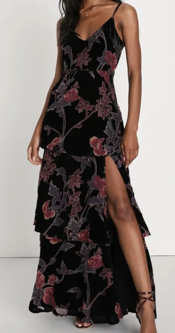 Black Floral Velvet Tiered Maxi Dress Lulus I Love You Amore Size XL - $45 (10% Off Retail) New With Tags - From Lydia