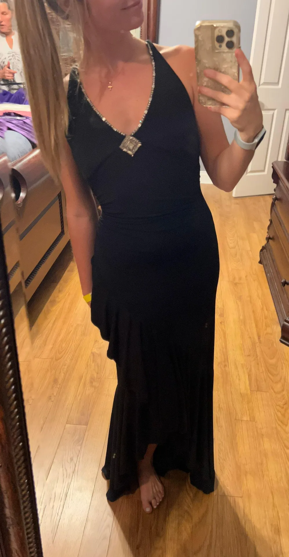 One of my favorite dresses! Stretchy material so it’s very comfortable! Perfect for a ball or homecoming! Fits Small-Medium and the back makes it even more adjustable! Very flattering