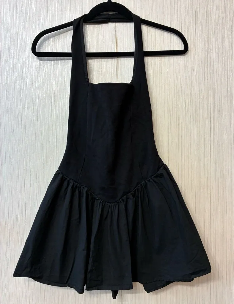 Halter Romper Playsuit Skort Skater Dress Black Mini Dress LBO Peplum Flared Open Back Backless Square Neck Sleeveless Cottagecore Goth Grunge Club Party Cocktail Chic Minimalist Sexy Flirty Y2K 90s Coquette Bodycon A-Line Effortless Style length 30in chest 14in
