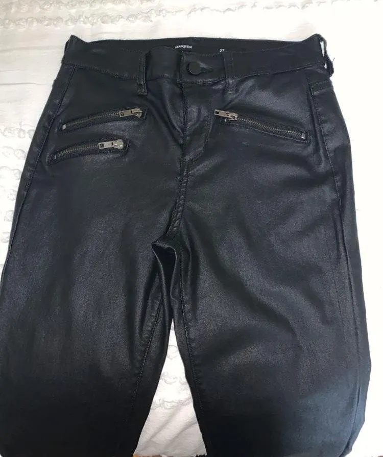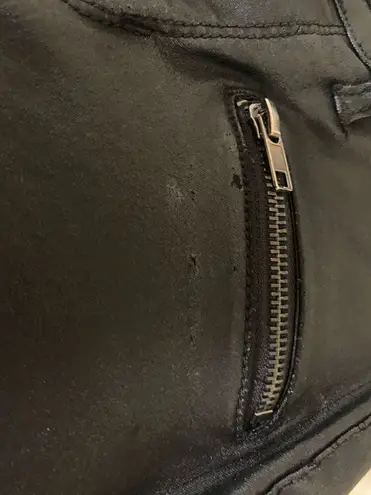 Black Leather Stretch Pants. They are not high-waisted. Very comfortable and cute for a night out!