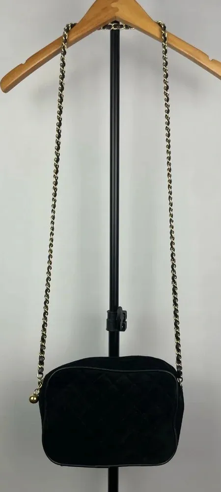 Black Quilted Faux Leather Camera‎ Bag with Golden Chain and Faux Leather Strap - $9 - From Alyssa