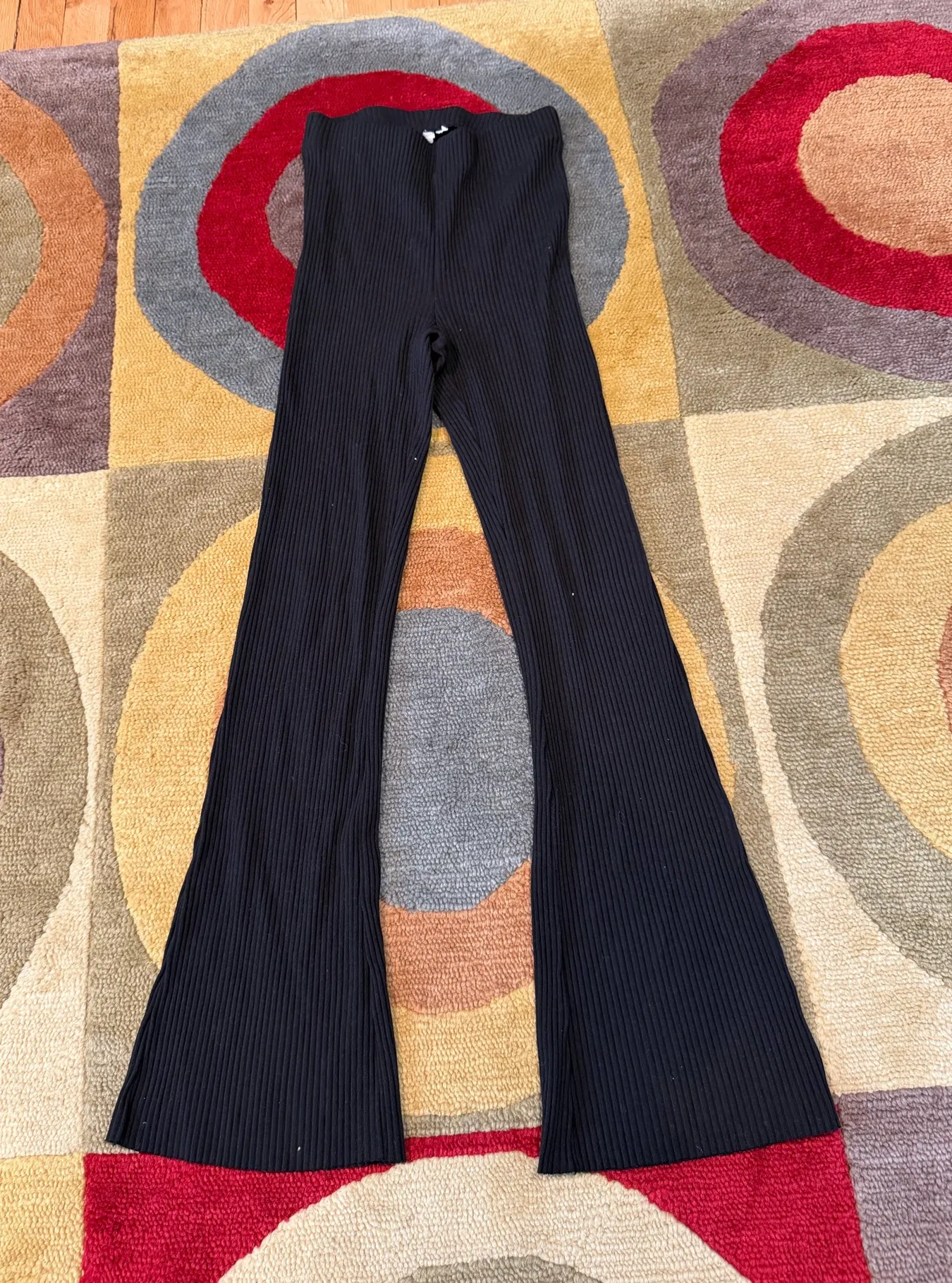 Black Ribbed Pull on High Waisted Flare Pants Bohemenian Style Women’s Size XS - $21 - From Emily