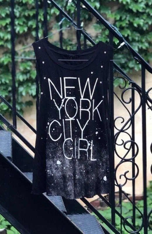 Black Tank Top BRAND NEW, Tags Still Attached The Classic Brand New York Girl Tank Top Black Tank Top with Rhinestones and Splattered Print And a opened back Fabric: 100% Rayon Price is firm No Trades!!!