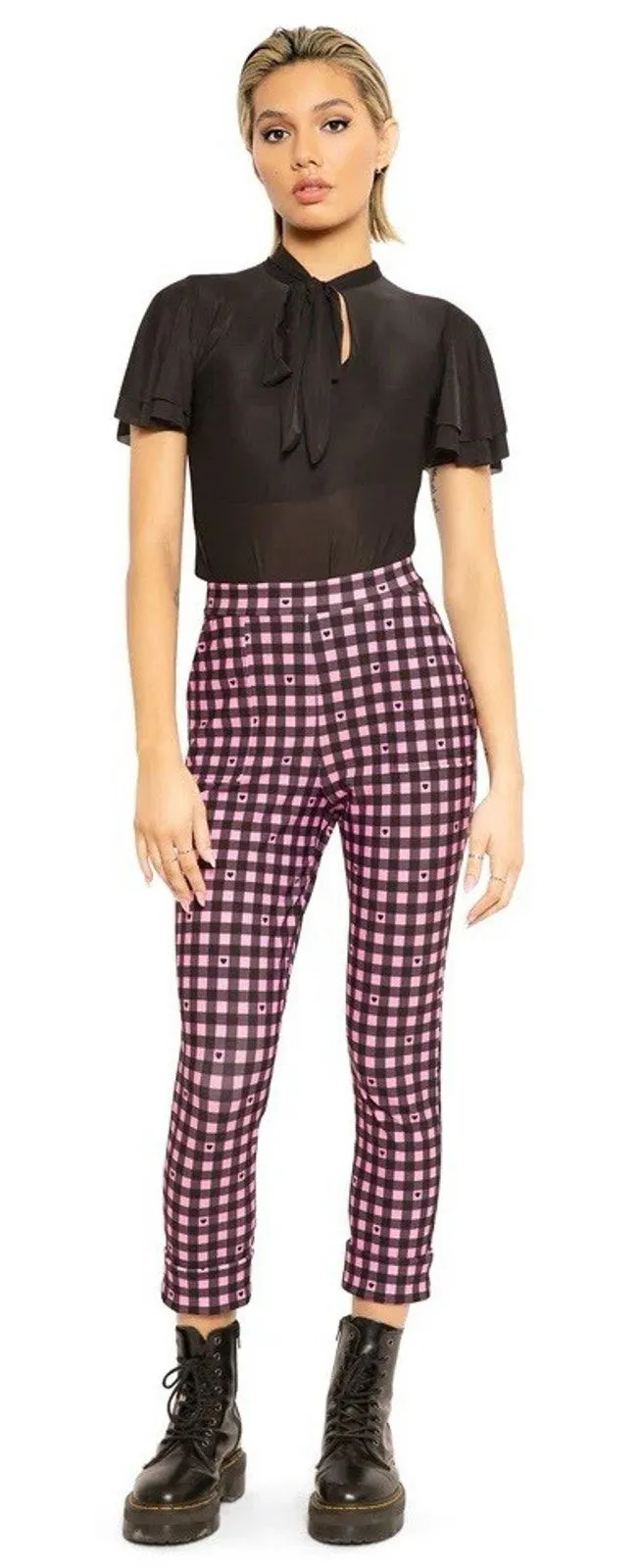 Very good Pre-Owned Condition (see pictures for condition) Features: * Style Profile: preppy, retro, punk, grunge * Flaws: No Holes, stains, or tears * Measurements: Waist (measured across the top of pant): 15" across Inseam (measured on inside seam): 27" Rise (front of pant): 12" * Washing Instructions: machine wash cold Size: US Womens Size Medium