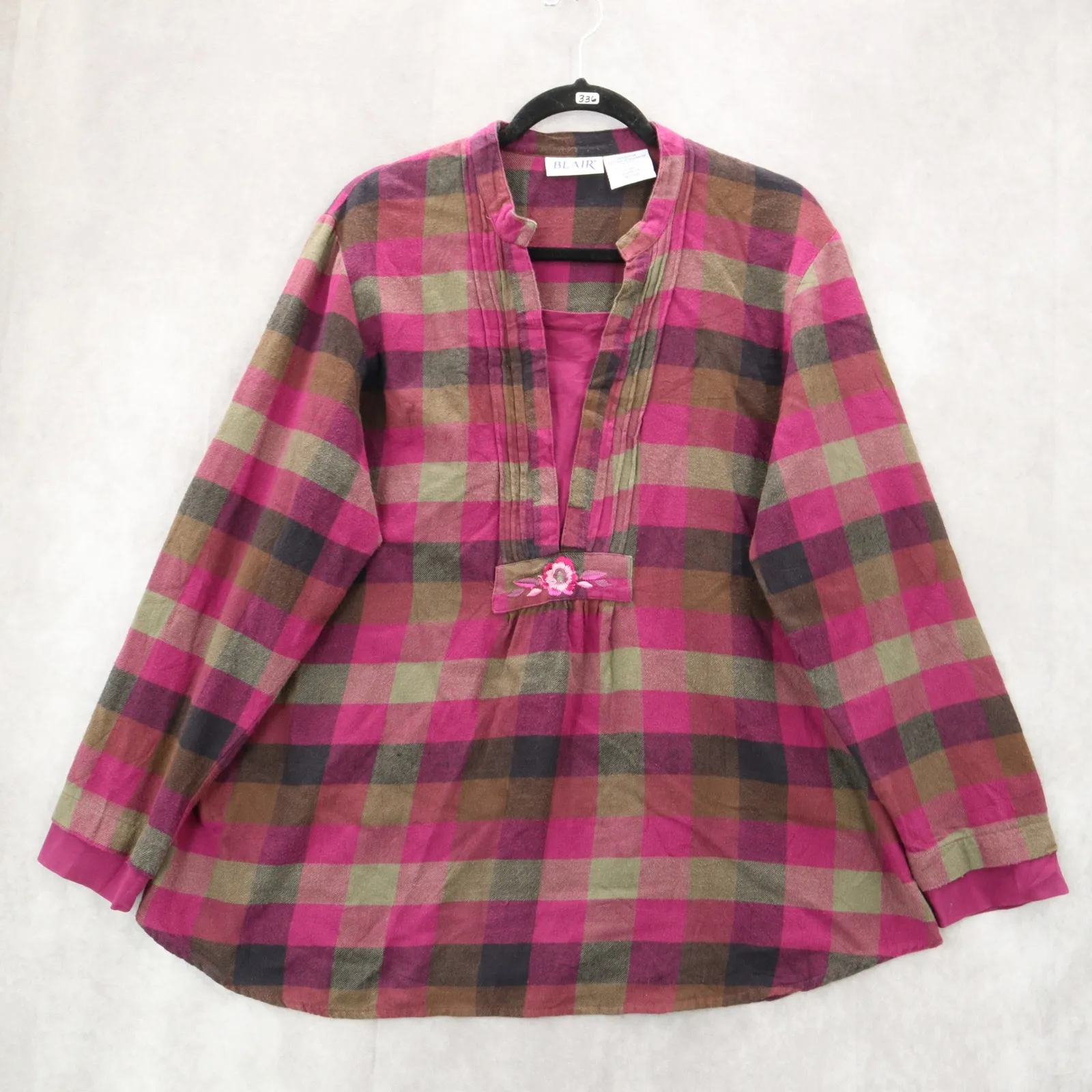Blair Purple Flannel Plaid Floral Embroidered Western Boho Cotton Indie Large - $29 - From LimenDime
