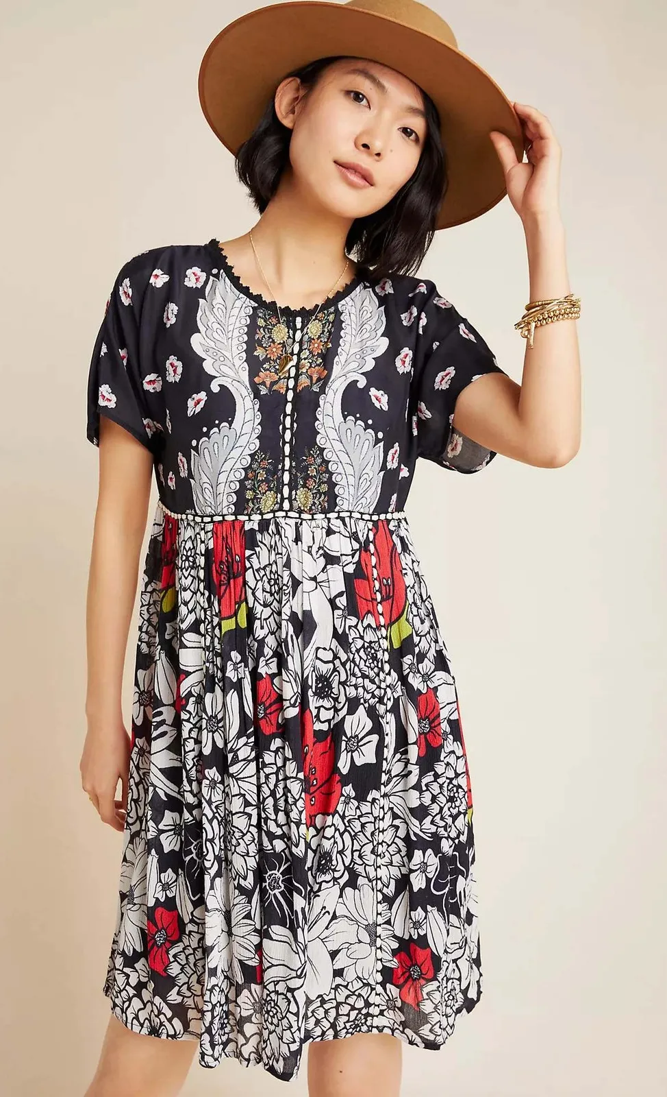 A vibrant burst of blooms awaits with this charming dress. The playful floral print dances across th... Show more