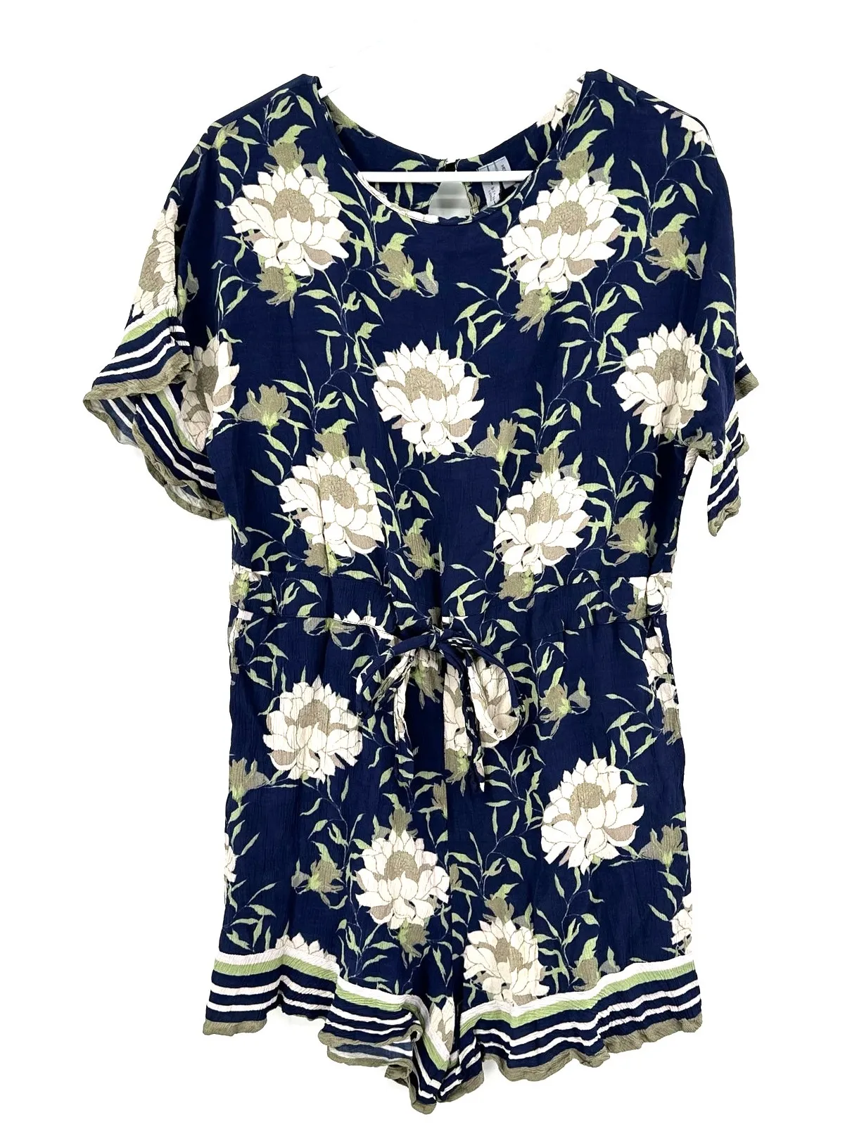 Blank London Size Medium Romper Blue‎ Floral Cinched Waist Short Sleeve Summer Blue - $28 - From Taylor