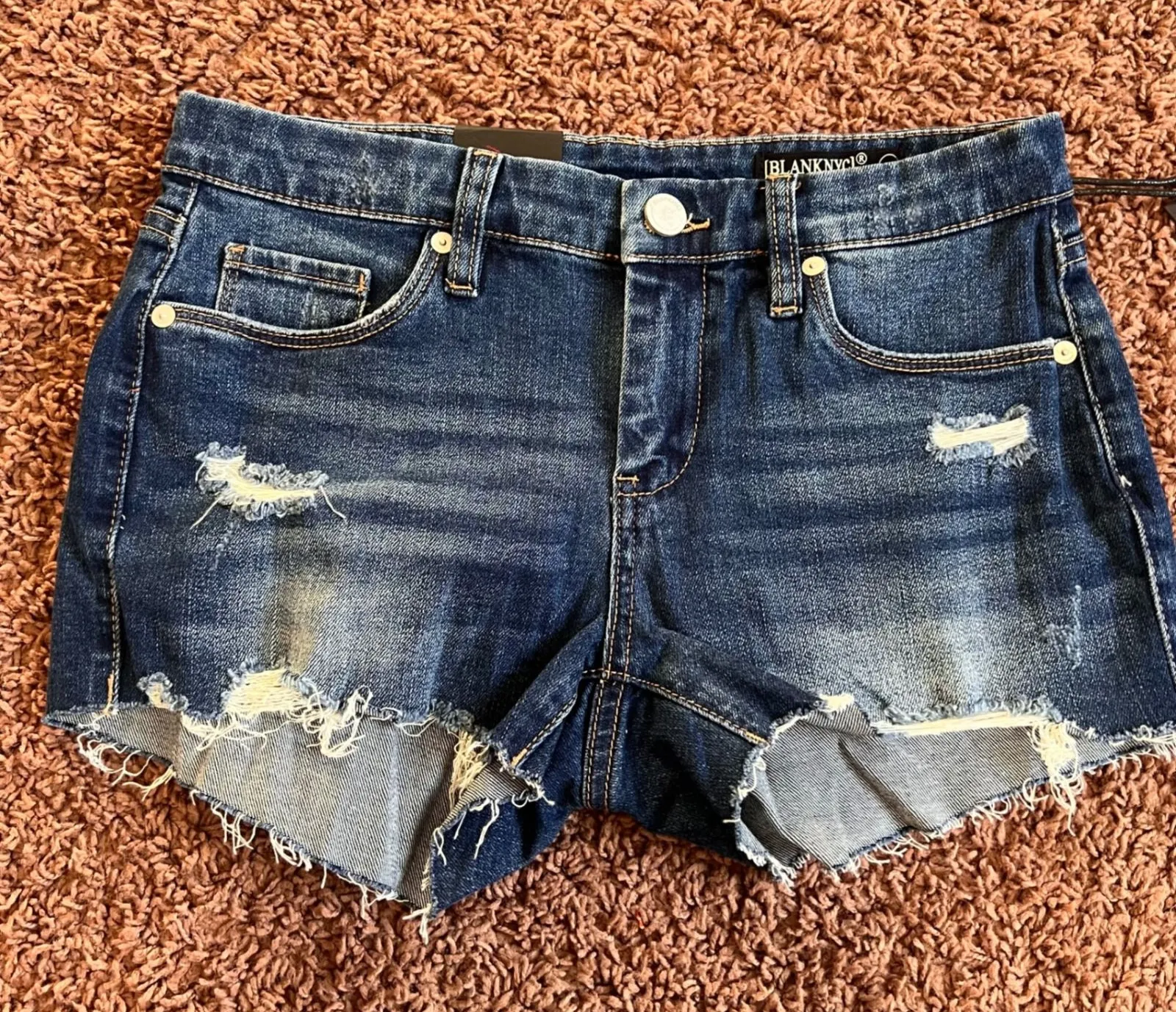 Keywords: BLANKNYC, denim shorts, cut off shorts, distressed shorts, dark wash shorts, women's shorts, size 25, casual shorts, summer shorts, festival shorts, blue denim shorts, ripped shorts