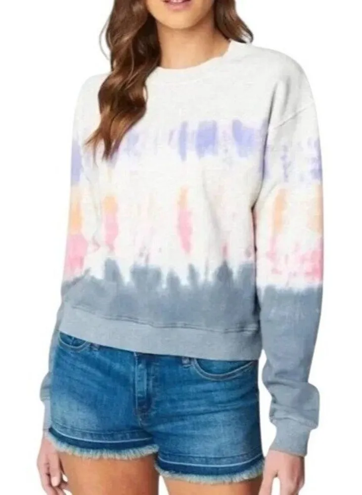 This tie-dye crewneck sweatshirt features a relaxed fit and a blend of soft 100% cotton material. Suitable for casual outings with vibrant pastel hues.