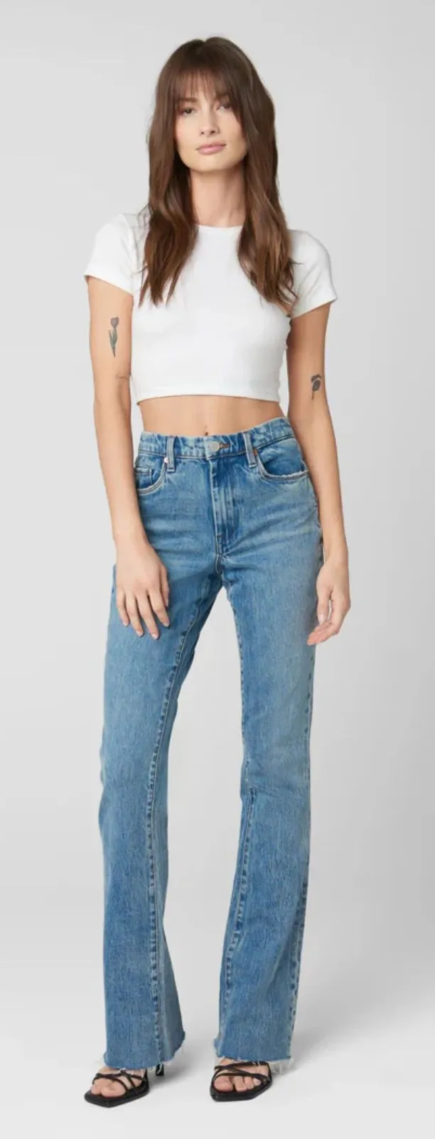 BLANKNYC The Hoyt Close Ranks Medium Wash High Rise Mini Flare Denim NWT Sz 26 Medium wash denim - i... Show more