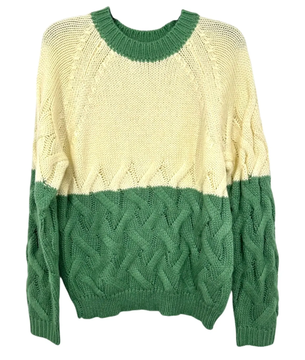 BLANKNYC Women's Size Medium Cream Green Colorblock Cable Knit Sweater NWOT NWOT in Excellent Condit... Show more