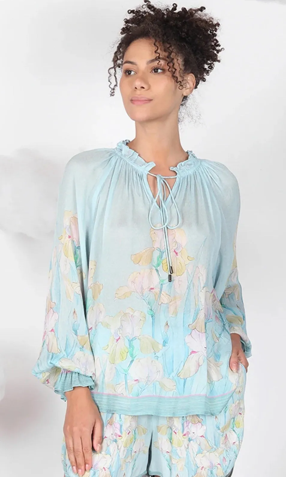 The Bl^nk London MAHOGANY TOP in size Large is a stylish and elegant blouse featuring a watercolor f... Show more