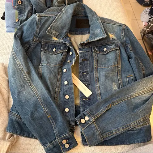 Classic blue denim jacket with a sleek design. Features a branded patch for a stylish touch.