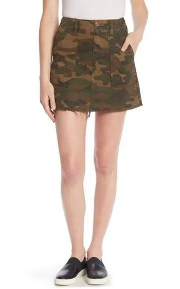 -NEW WITH TAGS - Blank NYC Camo Print Denim Fray Hem Skirt -Size: 28 (Size 6) -Color: “Chain Of Com... Show more