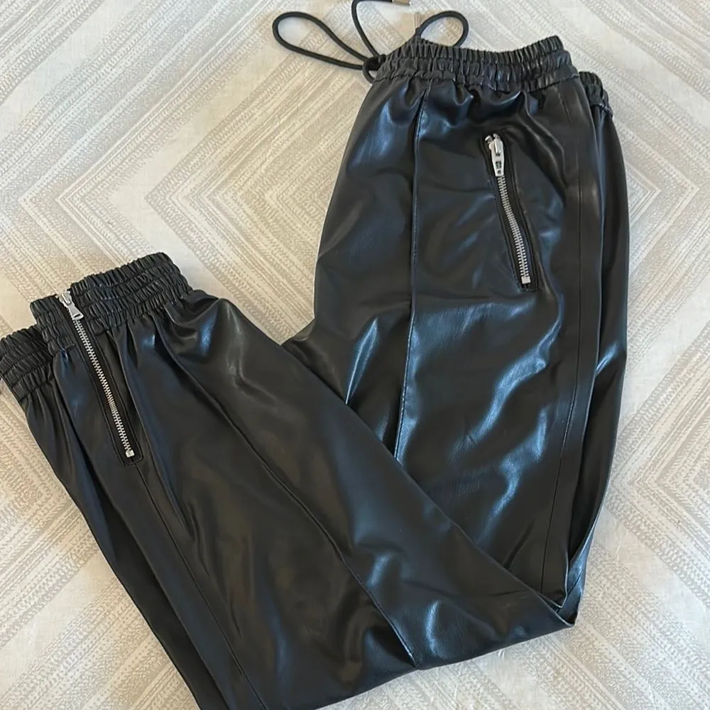 Blank NYC Women’s Black Faux Leather Jogger Zipper Pants - Size 27. Elevate your style with these s... Show more