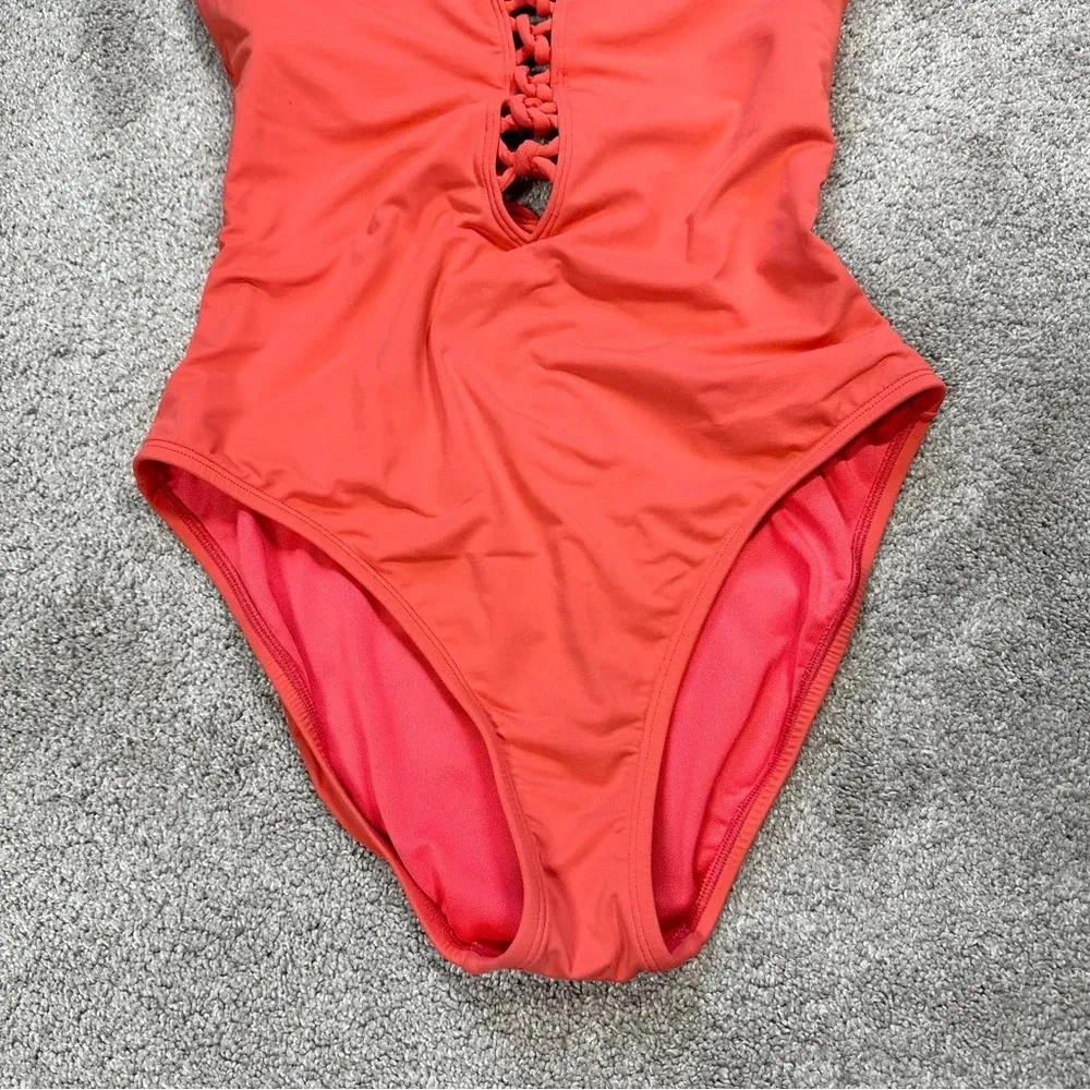 Note: • Excellent Used Condition • No flaws • Has no padding • Please see pictures for details and measurements. • Color may vary slightly due to lighting conditions. Lace down twister front and back Over the shoulder adjustable straps Removable cups Full coverage Adjustable straps Nylon, Spandex Imported Pull On closure Hand Wash