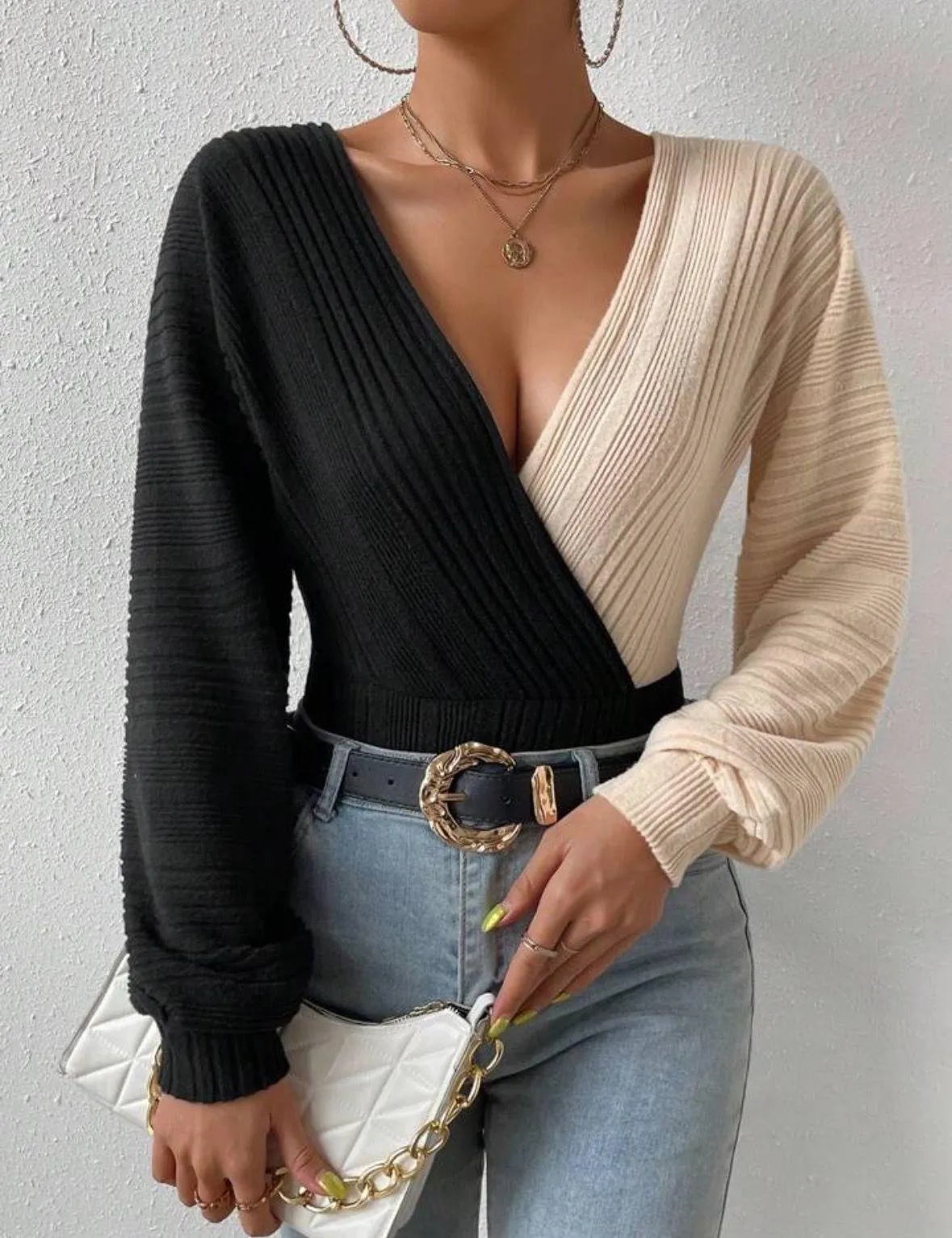 Block Color V-Neck Bodysuit Sweater Multiple Size L - $10 (66% Off Retail) - From Shana