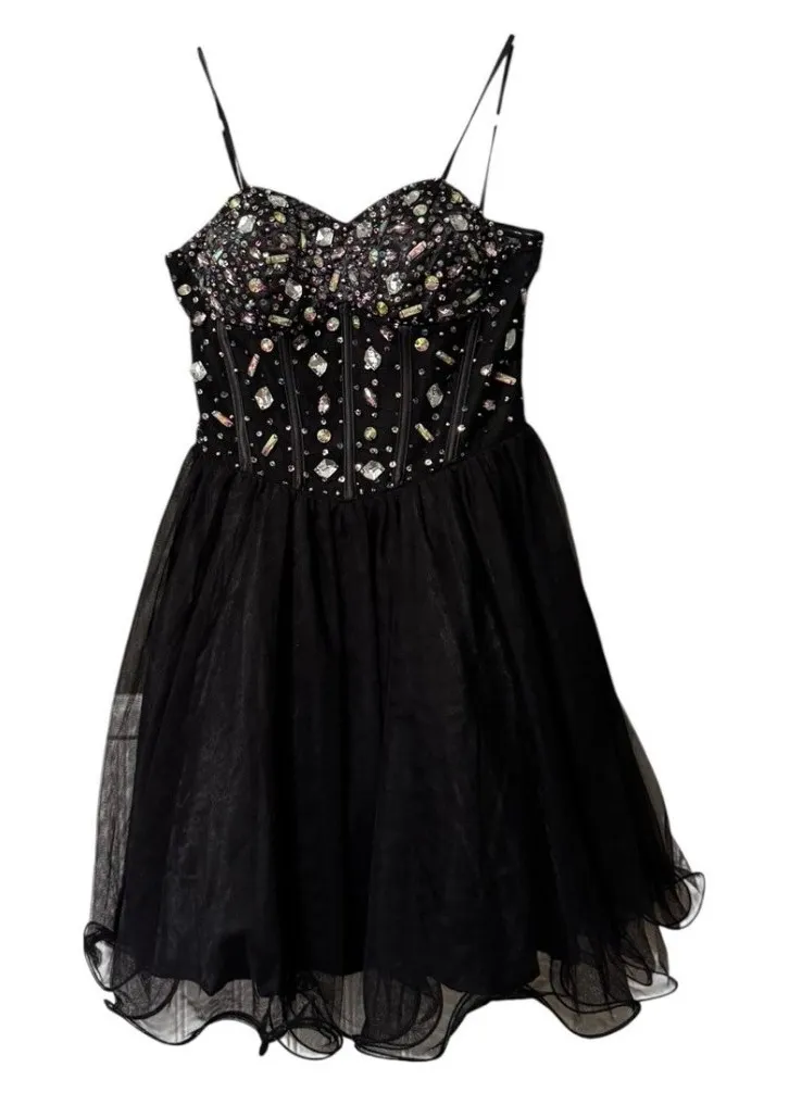 This dress is preowned and in great used condition! Blondie Nites By Stacy Sklar Mini Dress Formal Gems Prom Homecoming Polyester ***Please be advised, color may appear more vibrant, lighter/darker in pictures due to flash, contrast, lighting or your phone/computer screen set up, etc. I try to described color as best as possible. I do check every item very closely while taking pictures and while packing it for shipping but it is very easy to still miss a stain or small damage. So please, if you receive an item with a defect not mentioned on the description, message me and I will do my best to fix the problem. Thank you! This item is pre-owned. Any questions please dont hesitate to ask.