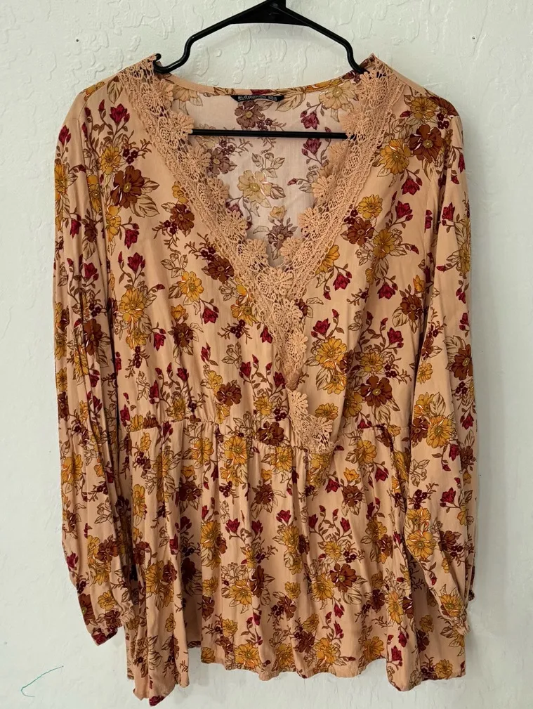 Bloomchic Floral Orange Pink Lace Babydoll Long Sleeve Blouse Plus Size 22/24 - $18 - From Audrey