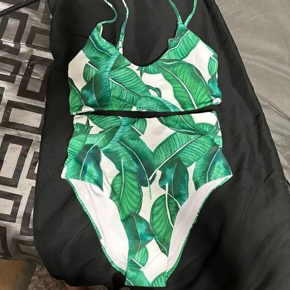Blooming Jelly WOMENS 2pc floral jungle bikini, high waisted bottoms green/white •Tag Size: Small •NEW WITH OUT TAGS-still has sticker strip on bikini bottoms •No Flaw LOC#1992