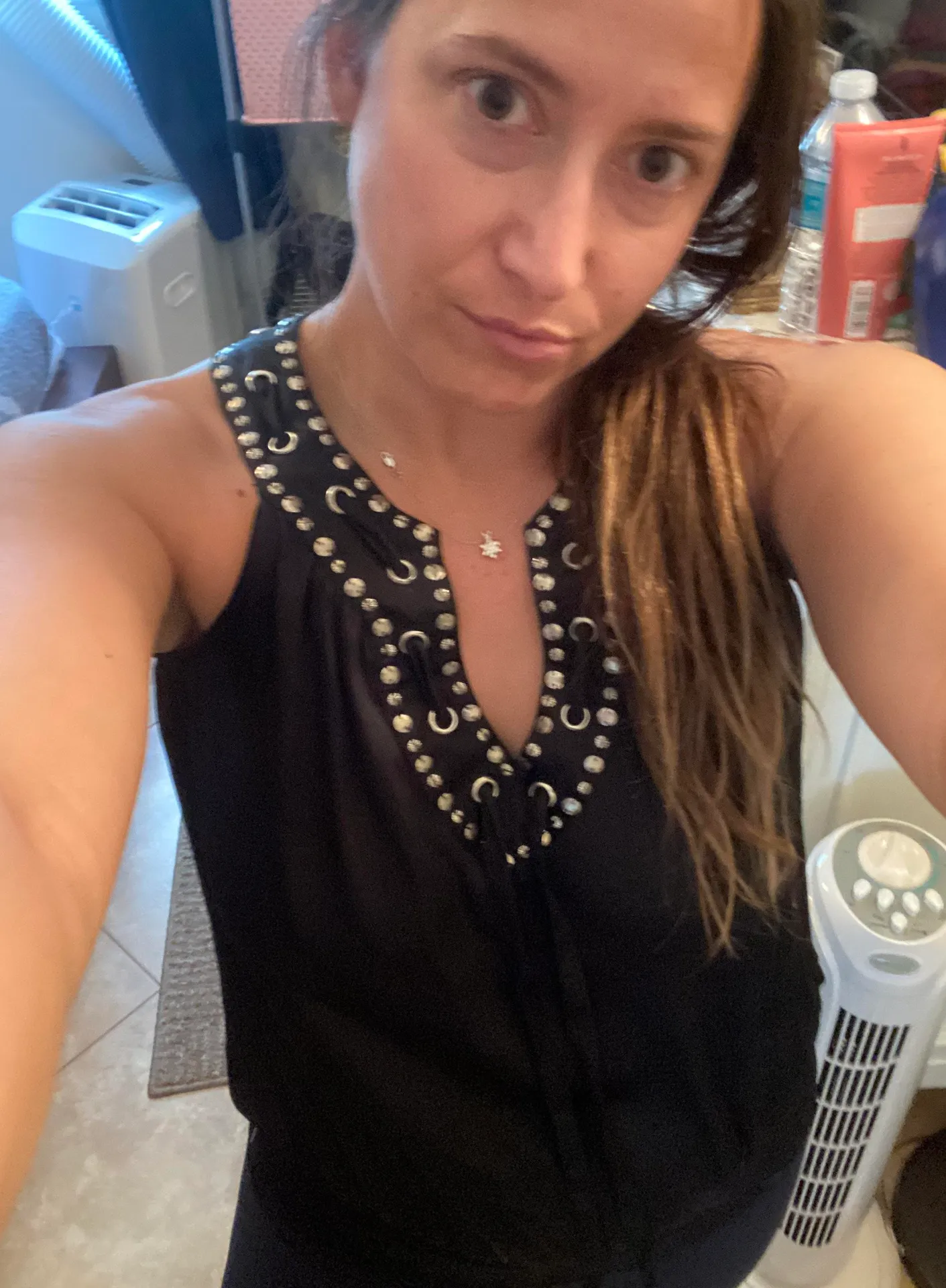 In great condition. It’s silky and has a tight fit around the waist... my chest got too large for it... Show more