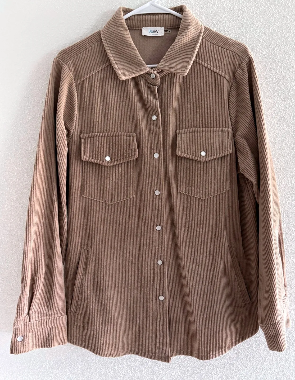 - Brand: Blu Ivy - Size: Women's Medium - Color: Beige - Details: Corduroy, Pearl Snap, Long Sleeve,... Show more