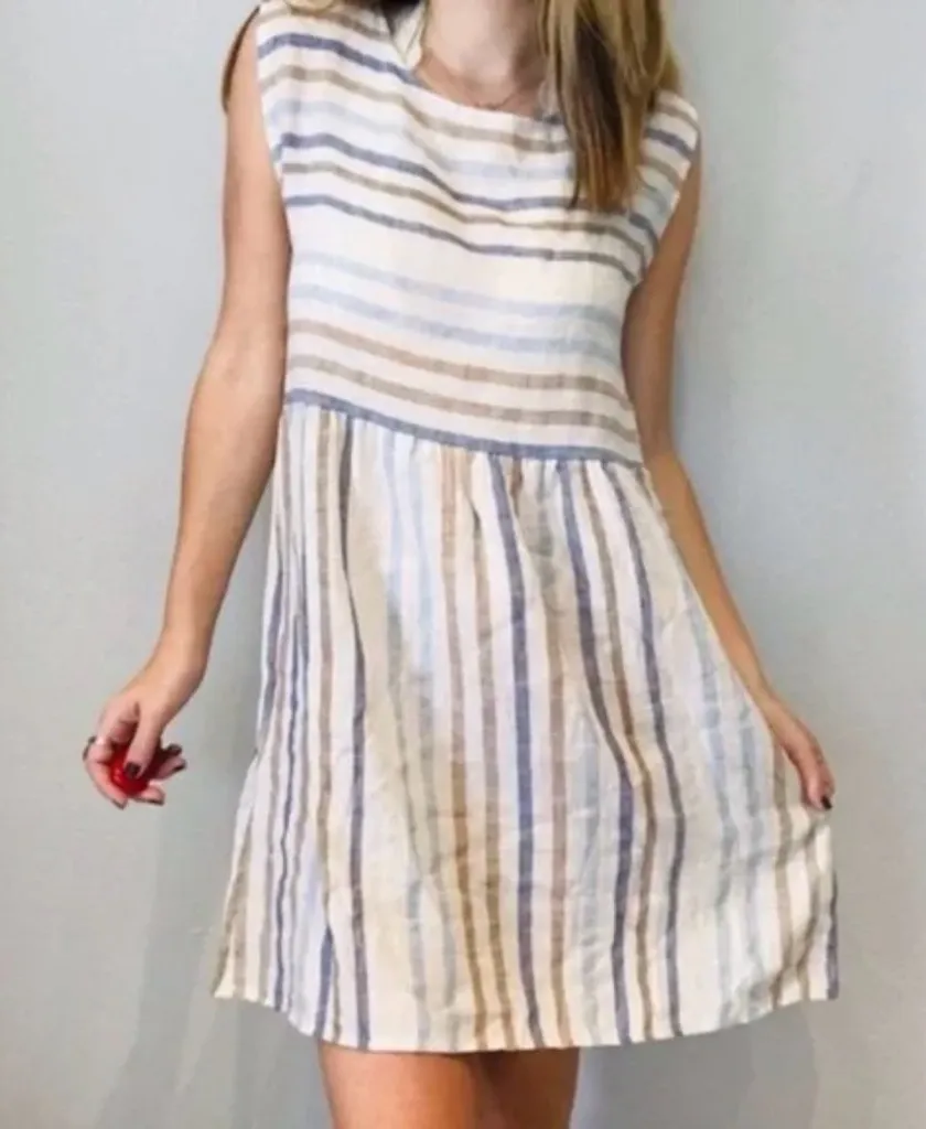 Beautifully crafted in Italy, this Blu Orchid linen dress features a lightweight, breathable design with multicolored stripes that bring a touch of bohemian charm. The natural linen fabric makes it perfect for warm-weather occasions, resort vacations, or casual everyday wear. Easy to dress up with sandals or keep relaxed for a laid-back look.