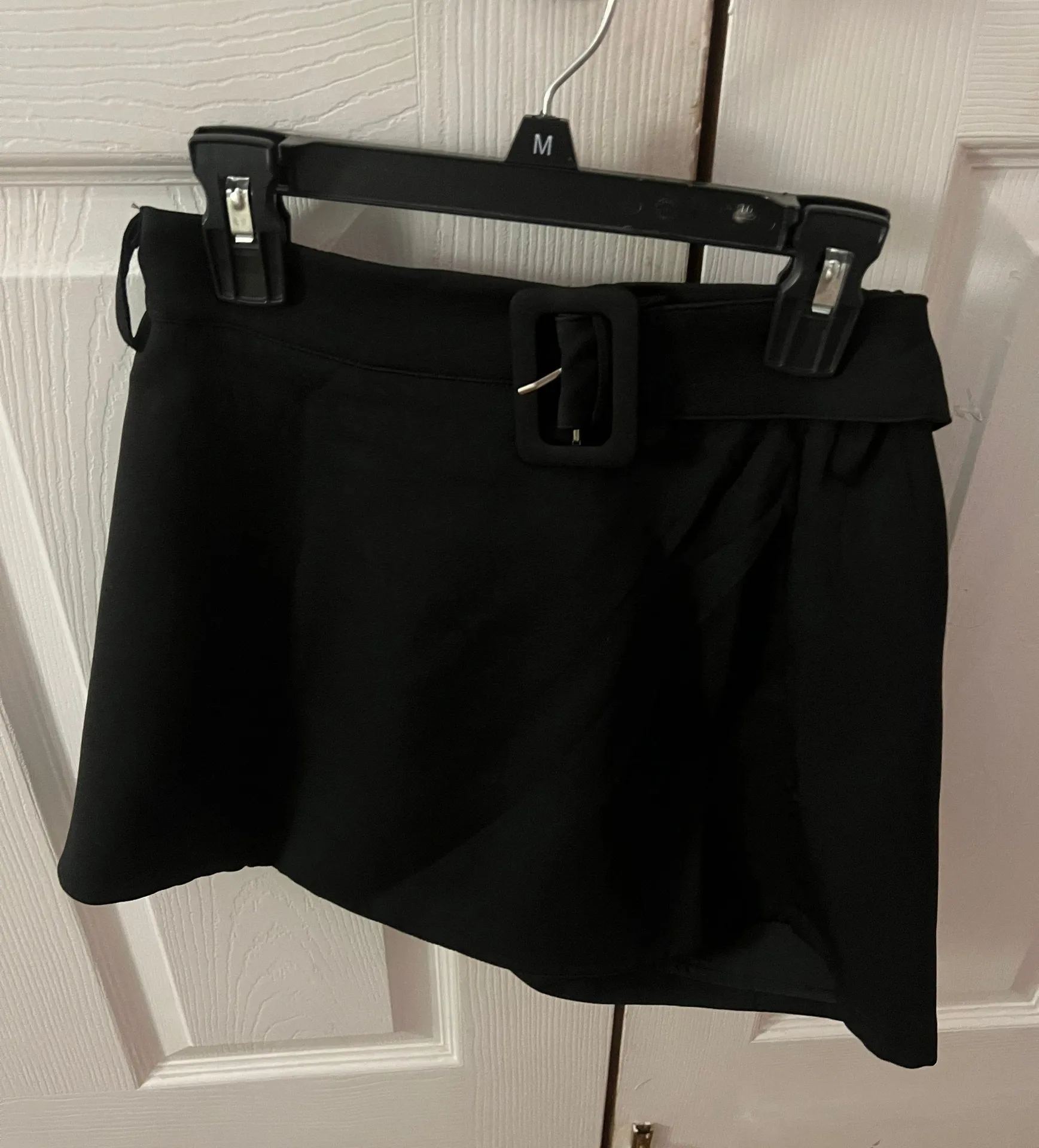 black mini skirt with shorts inside. has belt that buckles around. the perfect fit not to lose fitti... Show more