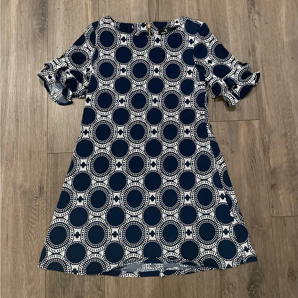 Perfect dress for many occasions from business to bridal/baby shower. Navy with white medallion patt... Show more