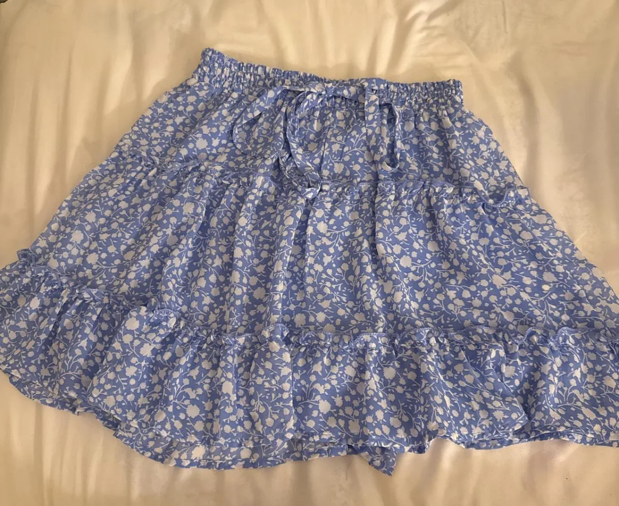 Blue and white floral skirt brand is sienna sky and has adjustable waist string - $8 - From allie