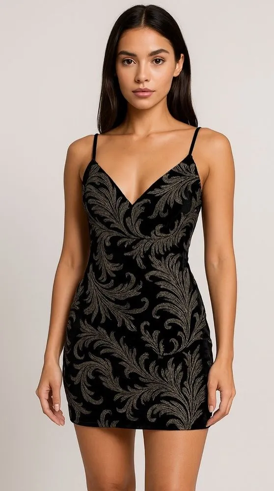 Stun at your next event in this gorgeous Blue Blush black velvet embroidered mini dress in size Medi... Show more