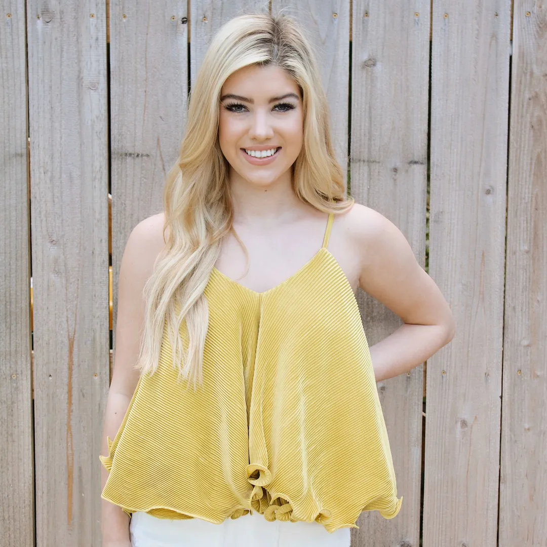 boutique overstock top! mustard ruffle top with spaghetti straps! new with tags! model is wearing a... Show more